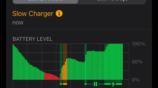 В Apple объяснили, что означает предупреждение о медленной зарядке iPhone и как это исправить с помощью «правильного» зарядного устройства, если зарядка происходит слишком медленно. Как пишет издание hdhAI, для начала надо обратится к настройкам аккумулятора iPhone, где можно найти подробную информацию о состоянии и производительности батареи, включая график уровня заряда за последние 24 часа. Этот график отображает процесс зарядки и разрядки устройства, при этом цветовая индикация графика меняется в зависимости от различных факторов, одним из которых является режим «медленной зарядки»...