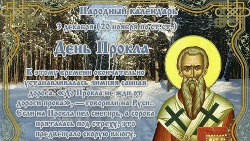 Проклы. Проклинают нечистую силу под землей, чтобы не выходила. С этого времени считался открытым санный путь, то есть можно было выезжать на санях. Перед поездкой, если нужно было отправляться в путь, просили помощи у святого Прокла, чтобы во время поездки сопутствовала удача. 3 декабря- В этот день Православная Церковь отмечает память святителя Прокла, архиепископа Константинопольского , ученика Иоанна Златоуста. 3 декабря - День памяти преподобного Григория Декаполита. Христианский подвижник и аскет, жил в VIII—IX веках...