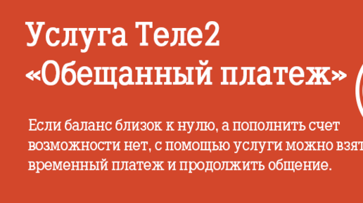 Многие сталкивались с такой ситуацией, когда на счету мобильного телефона нет средств, а надо быть на связи с важными контактами. Что делать, если возможности пополнить баланс попросту нет – удаленность от терминала или проблема с бюджетом? Абоненты Теле2 могут использовать услугу «Обещанный платеж», которая позволяет временно получить в долг для общения сумму денег определенного размера, после чего погасить ее через фиксированное количество дней. Таким образом можно всегда получить поддержку от оператора в сложных ситуациях...