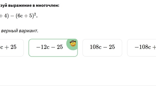 Преобразуй выражение в многочлен:12c(3c+4)−(6c+5)2