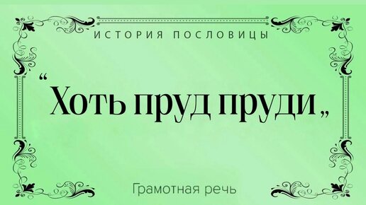 Откуда взялось выражение «хоть пруд пруди» и что это вообще такое — «прудить»? Выражение «хоть пруд пруди» означает «очень много», «в изобилии»: талантливых людей у нас — хоть пруд пруди! Но откуда взялось это любопытное сочетание? Обратимся к «Толковому словарю» Даля. Он объясняет, что «прудить» или «пруживать» значит перегораживать реку плотиной, чтобы вода разлилась и образовала пруд...