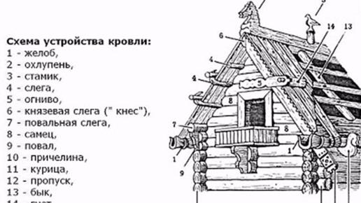 Крыша русской избы или терема: охлупень, слега, курица, причелина и прочее