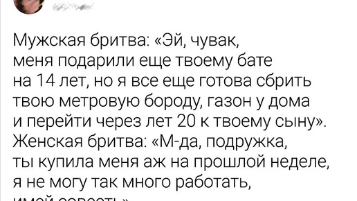 Можно сколько угодно говорить о том, что женские бытовые проблемы порой несерьезны и надуманны. Но многие дамы доходчиво объяснят, что и слон способен замаскироваться под муху. И даже обыденные вещи, например покупка средств гигиены или бритье ног, способны обернуться драмой...