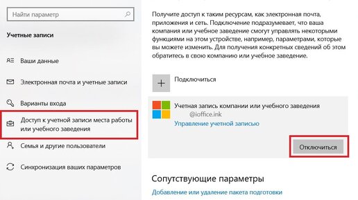 В данной статье рассмотрим как удалить рабочую учетную запись, т.к в меню "Электронная почта и учетные записи" есть только кнопка "Управление" и нет меню удаления.
