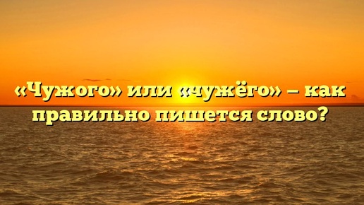 «Чужого» или «чужёго» — как правильно пишется слово? Не знаете, как следует писать прилагательное – «чужого» или «чужёго»? В окончании слова после шипящей согласной «ж» пишется буква «о» или «ё»? Чтобы установить верный вариант написания, вспомним подходящее правило. Как пишется правильно: «чужого» или «чужёго»? В окончании представленного прилагательного следует писать гласную «о» – «чужого». Какое правило применяется? «Чужого» – это имя прилагательное, которое в зависимости от контекста может быть представлено родительным или винительным падежом...