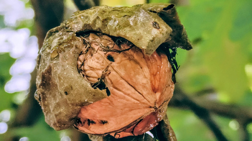 Добро пожаловать в наш осенний сад, где с приходом осени произошли изменения. Хочется за всем наблюдать, всё попробовать на вкус! У нас происходит ореха пад, если орех выпал чистым из оболочки, значит идеальный внутри, когда падает вместе с кожурой, и она от него плохо отходит, значит с орехом внутри произошли не вкусности. Орешник очень высокий, дерево большое, обрабатывать такие объемы сложно. На моё удивление в этом году много хорошего ореха. В том году мало собрали хорошего Грецкого ореха. Почти весь оказался повреждённым...