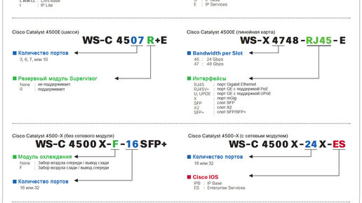 Расшифровка артикулов коммутаторов Cisco