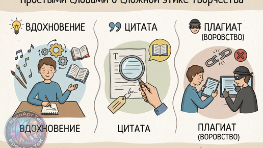 В эпоху, когда каждая идея облетает мир за секунду, вопрос плагиата волнует не только учёных и писателей, но и каждого, кто хоть раз создавал что-то своё — текст, музыку, дизайн или просто историю в соцсетях. Но где проходит настоящая грань между вдохновением, цитатой и грубым воровством чужого труда? Термин “плагиат” уходит корнями в латинское “plagiatus” — “похищенный, украденный”. Законодательство РФ определяет это в статье 146 УК РФ — это “присвоение авторства” или публикация чужих идей и трудов под собственным именем...