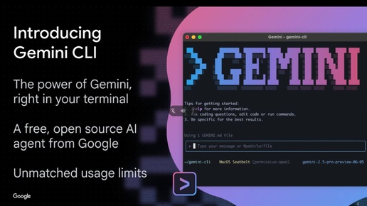 Gemini CLI: революция в терминале разработчика Google только что представил Gemini CLI — открытый ИИ-агент, который меняет представление о работе в командной строке 🔘Что это такое? Gemini CLI — это не просто ещё один инструмент командной строки. Это полноценный ИИ-агент, который: - Понимает ваш код с контекстным окном в 1 миллион токенов - Редактирует файлы и управляется с большими кодовыми базами - Создает приложения на основе PDF или скетчей благодаря мультимодальности - Автоматизирует задачи...