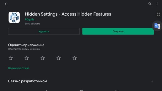 Страница программы Hidden Settings в Play Маркете. Скриншот мой.