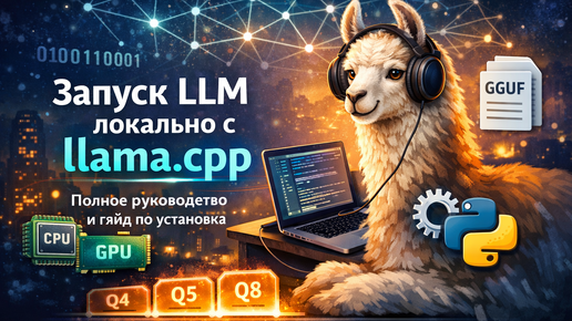 llama.cpp - это лёгкий, высокопроизводительный C/C++-фреймворк для запуска больших языковых моделей (LLM) локально - на ноутбуке, рабочей станции или сервере - без обязательной зависимости от облака. Проект изначально был создан для работы с моделями семейства Meta LLaMA, но сегодня поддерживает десятки архитектур. Главная идея: запустить современную LLM на обычном железе, используя квантизацию и оптимизации под CPU и GPU. Что такое llama.cpp и как он работает llama.cpp реализует: Работает напрямую с весами модели без PyTorch и Python-стека, что делает его: История создания llama...