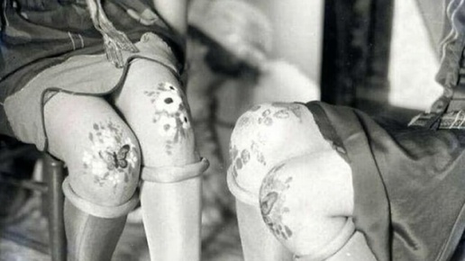 Они подворачивали чулки в виде рулика (наподобие гольфов), чтобы те не выбивались из‑под подвязок во время движений. Не ограничиваясь этим, модницы подчёркивали обнажённые колени румянами, а порой украшали их затейливыми узорами, напоминающими хохломскую роспись...
