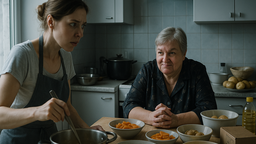 Инна проснулась в шесть утра от звонка будильника. За окном было ещё темно — октябрьское утро встречало дождём и холодным ветром. Инна потянулась, стараясь не разбудить Сергея, и тихо встала с кровати. Впереди был долгий день, и медлить не стоило. На кухне Инна включила свет и оглядела пространство. Вчера вечером свекровь привезла продукты — огромные пакеты с мясом, овощами, зеленью, специями. Всё это теперь занимало половину столешницы и весь холодильник. Инна вздохнула и принялась доставать ингредиенты...
