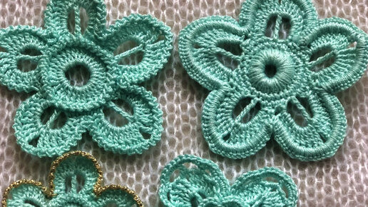 Цветочные мотивы, связанные крючком в технике "Ирландское кружево" - одна схема, разные цветочки