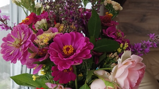 Привет! Решила поделиться красотой, которую вырастила на участке и собрала в чудесные букеты. Цветы люблю в любом виде ( даже нарисованные)) Но больше всего глаз радует букет в вазе, поэтому выращивала букетные и беспроблемные цветы. Назову те, с которыми не было проблем в выращивании и покажу, какие можно сделать букеты из них ) Дельфиниум. Он - многолетник, однажды посеяли и забыли, сам растет )) Здесь простой букетик. Был конец лета, дельфиниумы повторно цвели, а просо само попросилось в букет )) Далее идут циннии...
