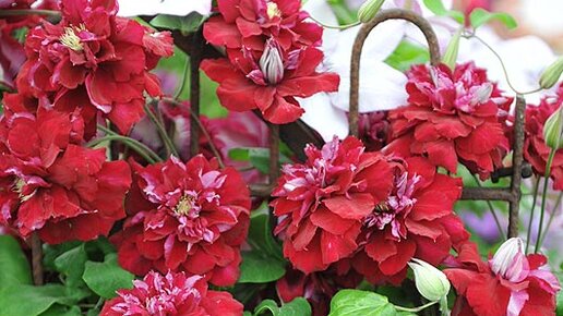 Всегда было трудно найти клематисы с крупными цветками, по окраске близкие к настоящему красному цвету – у них всегда есть примесь фиолетового, которая уводит их в пурпур. Однако селекционеры не оставляют надежд вывести красные сорта, используя «кровь» клематиса техасского. Наибольших успехов в селекции красных клематисов добился знаменитый английский бридер Раймонд Эвисон. 1. Новинка прошлого года, клематис ‘Nubia’ выглядит очень эффектно благодаря бархатистой фактуре лепестков, их насыщенному винно-красному оттенку и темно-пурпурным тычинкам...