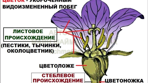 Цветок -орган семенного размножения растений, видоизмененный, укороченный и ограниченный в росте побег.