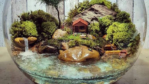 Так много всего прекрасного на свете! Глаз радуется при виде вот таких произведений искусства: Настольные террариумы со своим микроклиматом (не требующие полива) сами по себе красивый и интересный декор интерьера. Вы всегда можете легко построить очень маленький террариум для террариумных растений самостоятельно. Ведь такие террариумы выглядят очень оригинально и красиво. Идеальными могут быть террариумные растения, такие как бромелии, вьющиеся растения, папоротники, мхи, наземные растения и суккуленты...