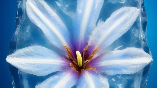 Отличная идея - рисовать или фотографировать цветы, застывшие во льду! Такой контраст между теплой летней живой красотой Цветка и холодной замершей красотой льда... Цветы во льду я подсмотрела у японского фотографа РЮЙДЗИ, это серия работ, которую он назвал "ЛЕДЯНЫЕ ФОРМЫ ". Конечно, я захотела повторить в приложении Шедеврум такую красотищу! И получилось! Снимки из этой серии не только поразительно красивы, но и символичны, подчеркивая контраст между жизнью и смертью, красотой и разрушением. Погрузившись в тему глубже, я обнаружила, что не только Рюйдзи реализовал подобную идею...