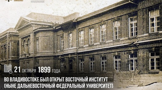 21 октября 1899 года во Владивостоке был открыт Восточный институт (ныне Дальневосточный федеральный университет)