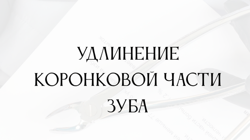 Коронковая часть зуба - это та часть, которую мы видим над уровнем десны. Иногда её высоты недостаточно для качественного восстановления зуба пломбой или коронкой. В таких случаях проводится удлинение коронковой части - хирургическое перемещение края десны вниз, чтобы открыть доступ к здоровым тканям зуба.