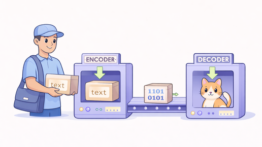 (И почему это похоже на работу курьера, упаковщика и дизайнера 📦) Представь: ты хочешь отправить другу рецепт бабушкиного бутерброда. Но ты не можешь просто сказать: «Возьми хлеб, авокадо, яйцо…» — он в другой стране, интернет слабый, а рецепт — длинный. Что ты делаешь? Энкодер и декодер — это и есть упаковщик и распаковщик в нейросети. Они отвечают за то, как ИИ «понимает» запрос — и как «собирает» ответ. Ты пишешь: «Нарисуй кота в шляпе, как в “Алисе в Стране чудес”» 🔹 Энкодер (упаковщик) получает...