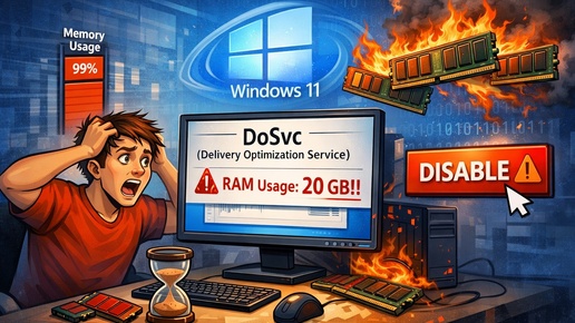 Речь идёт о DoSvc (Delivery Optimization Service) — встроенной службе в Windows 11, которая отвечает за «умную» доставку обновлений 📦 На бумаге идея хорошая, но на практике всё вышло не очень 👀 Пользователи начали массово замечать, что DoSvc может съедать до 20 ГБ ОЗУ — просто в фоне, без видимой причины 🤯 Из-за этого: — система начинает тормозить — приложения...