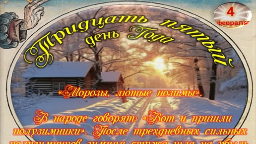Друзья! Ваша рука перевернула очередной лист календаря. Сегодня, 4 февраля 2026 года, 35 день 2026 года по григорианскому календарю, или 22 января по юлианскому календарю. 17-18 - й лунный день, 22 Солнечный День 11 солнечного месяца, посвященного Благой Мысли. Его основная функция – помочь человеку установить связь со своим «Я». Приветствую тебя мой гость. Добро пожаловать в 4 февраля - в тридцать пятый день Нового года. 4 февраля — дата, в которой гармонично сочетаются важные и забавные моменты, серьёзные события и курьёзные происшествия...