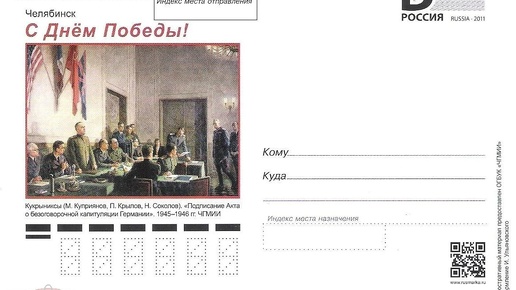 ✉К главному празднику нашей страны — Дню Победы — Почта России по инициативе Общественного движения "Наш Челябинск" году выпустила почтовую карточку в 2020. Совместно с Челябинским музеем изобразительных искусств мы снова рассказали об одном из уникальных произведениях искусства, которые хранятся в нашем городе🏛. 🎈В этот раз на почтовой карточке была размещена картина Кукрыниксов "Подписание акта о безоговорочной капитуляции Германии" (1945-1946 гг.). Для легендарного Танкограда, который вложил так много сил в Великую Победу, пожалуй, это одна из самых важных картин в коллекции музея...