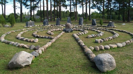 Лабиринтами называются выложенные на земле фигуры из небольших камней, которые представляют собой спиралеобразные дорожки, проложенные на округлой или подковообразной площадке и сходящиеся в её центре. С наружной стороны камни более мелкие, а ближе к центру – крупнее. Спираль – один из глубочайших символов Вселенной. Спираль выступает в качестве единого кода единого мира, который заложен природой в фундамент всего живого и неживого. Также образ спирали у северных народов ассоциировался со змеёй, свернувшейся во сне кольцами...