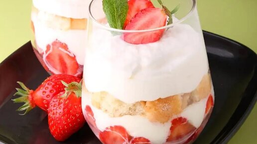 ДЕСЕРТ С БИСКВИТОМ,КЛУБНИКОЙ И СМЕТАННЫМ КРЕМОМ