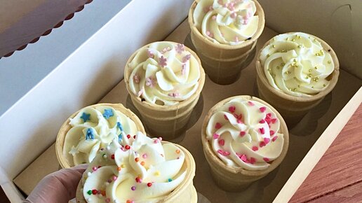Здравствуйте, дорогие подписчики :) Меня зовут Анжелика Ким, я уже 4 года делаю десерты на заказ, и сегодня хочу поделиться с вами рецептом очень эффектных, но в тоже время довольно простых в приготовлении пирожных. Рецепт пирожных «Мороженное» 🍦⠀⠀ Вафельные стаканчики для этого десерта можно купить в специализированных кондитерских магазинах, которые сейчас есть практически в любом городе...