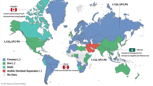 Как разные страны отделяют десятичную дробь и разряды при записи чисел ? Единства нет даже здесь!