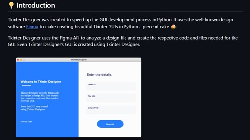 🖥Tkinter Designer — это инструмент, который позволяет превращать дизайн из Figma в готовый код интерфейса на tkinter без ручной верстки