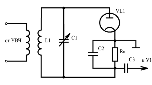 Применение диодов не ограничивается выпрямлением переменного тока для радиоаппаратуры. Диоды могут выпрямлять токи высокой частоты, т. е. применяться для так называемого детектирования. Детектирование - это процесс, в результате которого из модулированного высокочастотного сигнала выделяется низкочастотный сигнал, содержащий какую-либо информацию в виде сообщения. Детектирование – это радиотехнический процесс обратный модуляции и поэтому его часто называют демодуляцией. Сообщение – это форма представления информации для её передачи, хранения, обработки или непосредственного использования...