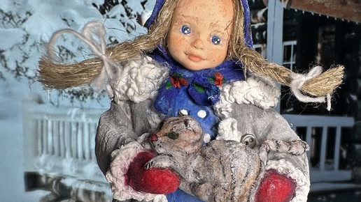 Ой, я как эту девочку сделала — в серой дублёнке, с пушистой овечьей опушкой, в синем платке с павлопосадскими цветами, с косичками, в полосатых штанишках и с котиком в руках — так меня прямо накрыло воспоминаниями. Знаешь, теми самыми… из детства, когда нам было лет десять, и мы были уверены, что способны спасти весь мир, начиная с ближайшего подворотнего кота. Мы же тогда жили будто в вечной зиме — когда мороз щиплет щёки, валенки уже на размер больше, чем нужно, а ты всё равно несёшься домой,...