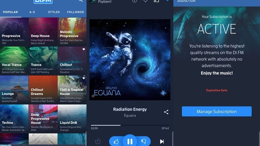 DI FM — приложение, объединяющее множество интернет-радиостанций, которые играют электронную музыку разных направлений