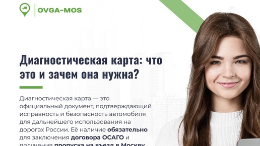 Диагностическая карта — это официальный документ, подтверждающий исправность и безопасность автомобиля для дальнейшего использования на дорогах России. Её наличие обязательно для заключения договора ОСАГО и получения пропуска на въезд в Москву или другие регионы с ограничениями. Диагностическая карта — это лист формата A4, выдаваемый оператором техосмотра, содержащий заключение о пригодности транспортного средства к эксплуатации. Карта содержит данные о проверке всех систем автомобиля и является неотъемлемой частью оформления полиса ОСАГО...