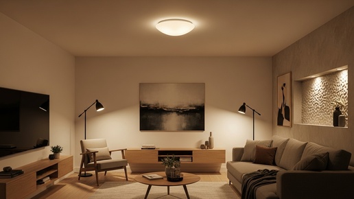 Комната 5×3,6 → (5+3,6)×8,33 ≈ 71 см — отправная точка для центральной люстры. Если люстра над столом. Берите ширину светильника ≈ ½–⅔ ширины столешницы. Линейные модели держите короче столешницы примерно на 30 см суммарно (по ≈15 см «воздуха» у торцов). Высота подвеса над столом. Комфортный коридор — ≈76–91 см от низа светильника до столешницы...