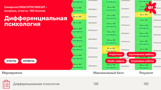 Дифференциальная психология (Синергия/МОИ/МТИ/МОСАП – вопросы, ответы, 100 баллов)
