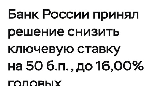 📉 Совет директоров Банка России 19 декабря 2025 года принял решение снизить ключевую ставку на 50 б.п., до 16,00% годовых
