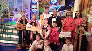 В телецентре «Останкино» заинтересовались творчеством сотрудника Смоленской АЭС Владимира Платонова и фольклорного коллектива детской музыкальной школы. Их пригласили на капитал-шоу «Поле чудес». Передача получилась живой и яркой. Включайте телевизор 27 сентября в 19.45, на Первом канале! Встать за барабан капитал-шоу нашего коллегу заставило желание познакомить зрителей с народными инструментами. Он использует любые возможности, позволяющие продемонстрировать завораживающее звучание смоленского рожка или двойной свирели, показать способности коллектива, любовь детей к музыке своей земли...