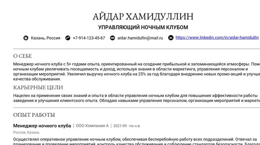 Пример резюме менеджера ночного клуба 2025 - Как составить