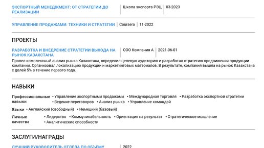 Пример резюме руководителя отдела экспортных продаж 2025 - Как составить