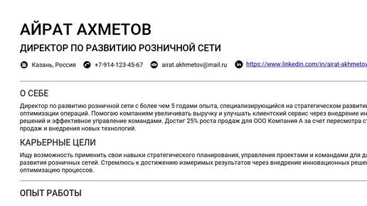 Пример резюме директора по развитию розничной сети — ваш ключ к пониманию, как выгодно представить себя на рынке труда. Изучение готовых примеров поможет создать по-настоящему эффективное резюме и значительно увеличить шансы получить эту ответственную должность! ✨ Здесь вы найдете подробное руководство о том, как составить идеальное резюме директора по развитию розничной сети, подходящее как для начинающих, так и для опытных специалистов. Мы предоставляем пошаговые инструкции для каждого раздела, охватывающие: Изучив пример, вы сможете создать резюме с помощью нашего конструктора резюме...