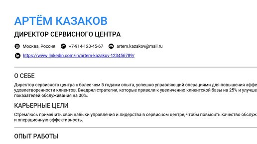 Пример резюме директора сервисного центра 2025 - Готовые примеры