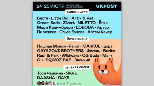 Контакте объявила имена более чем 30 артистов, которые выступят на крупнейшем городском open-air-фестивале страны — VK Fest. Об этом «Коду Дурова» сообщили в пресс-службе соцсети.
