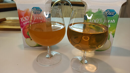 Помимо консервов для обзора, я прикупил две такие упаковки сока. Обошлись они мне по 29 рублей каждая!!! Смотришь на состав и, вроде бы, ничего криминального: Странно, но насколько я знаю, состав пишется в последовательности, соответствующей количеству ингредиентов по мере их уменьшения. По этой логике, воды здесь меньше всего. Даже меньше, чем лимонной кислоты. 🤷♂️ Не правда ли удивительно? При наливании в стакан, яблочный сок казался крайне прозрачным...