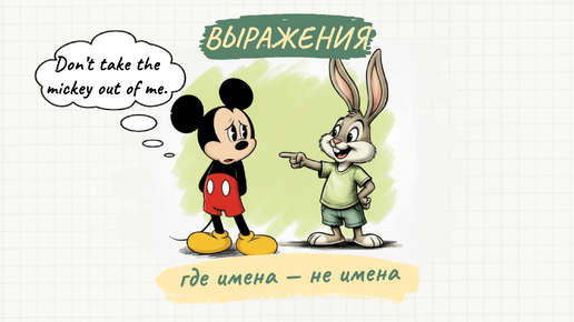 В своей статье «Roger that, peter out» я обещала поделиться с вами ещё несколькими английскими выражениями, где имена — не имена. Так что вот вам небольшая подборка. Вы наверняка знаете, что Mickey — это один из вариантов сокращения имени Michael. Но в выражении to take the mickey out of someone ни о каком Микки речи не идет. Эта фраза означает высмеивать кого-то, выставляя его в глупом свете (в шутку или со зла). Её можно перевести как «дразнить кого-то», «смеяться над кем-то». Используется она в британском сленге...