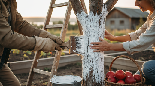 Каждый раз, когда в октябре по утрам на траву ложится серебристая изморозь, я вспоминаю одну картину. Солнечный день, тихо потрескивает сухая кора, и на южной стороне штамба молодой яблони тонкая коричневая полоска вспухает и будто разглаживается теплом. А ночью приходит резкий минус, и в том же месте тянется трещина, как нитка по ткани. Ранней весной она чернеет, края подсыхают, в щель набивается влага. На таких ранах деревья и теряют силу, и пропускают инфекцию. Ровно в эти дни много лет назад мы начали белить плодовые деревья осенью и прекратили терять молодые яблони на второй-третий сезон...